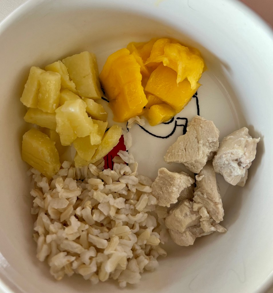 Todays dinner!!! mango, potato, brown rice and chicken, yum yom yum 😋😋😋